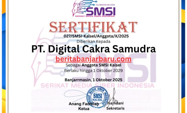 Banjarbaru, BeritaBanjarbaru.com – Pemerintah Kota Banjarbaru resmi memiliki Sekretaris Daerah (Sekda) definitif. Sirajoni, yang sebelumnya menjabat sebagai Penjabat Sekda, kini dilantik secara resmi oleh Wali Kota Banjarbaru Hj. Erna Lisa Halaby dalam…