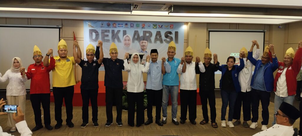 Sejumlah ketua partai politik pengusung bakal calon Wali Kota dan Wakil Wali Kota Banjarbaru Lisa Halaby – Wartono berkumpul, Kamis (29/8/2024) siang di Fave Hotel Banjarbaru untuk mendeklarasikan keduanya untuk diusung dan dimenangkan di Pilkada Serentak 2024