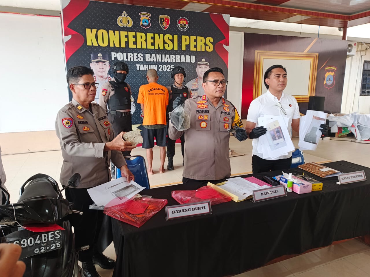 “Serangkaian tindakan tersebut membuat korban merasa terancam dan mengalami kerugian sehingga melapor ke Polres Banjarbaru. Tim Satreskrim langsung melakukan penyelidikan lapangan dan berhasil menangkap pelaku,” jelas Kapolres.