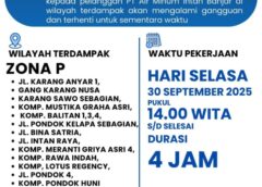 PTAM Intan Banjarbaru melakukan pemindahan pipa berdiameter 150mm di Jalan Panglima Batur, Banjarbaru, pada Selasa (30/9/2025). Tindakan ini merupakan bagian dari proyek pengerjaan drainase yang tengah dijalankan oleh Pemerintah Kota Banjarbaru. Informasi terkait pengerjaan ini telah disebarluaskan melalui akun media sosial PTAM Intan Banjar agar pelanggan dan masyarakat umum dapat mengetahuinya.